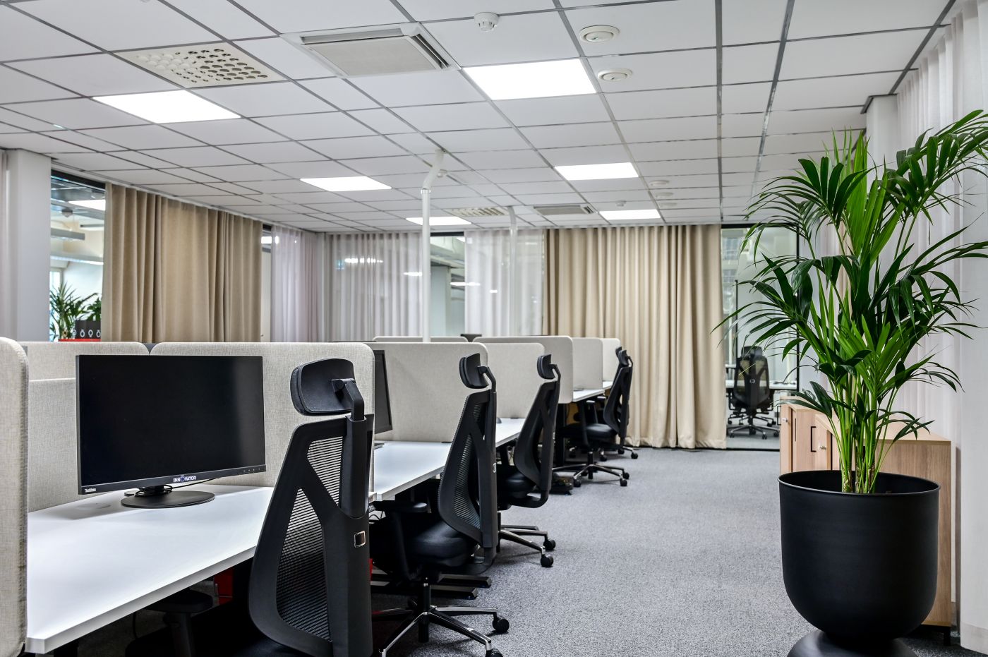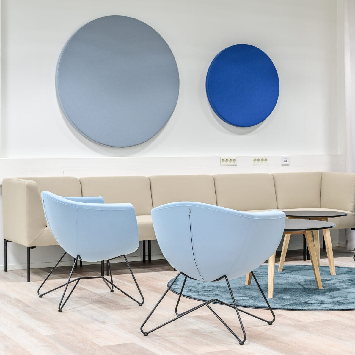 Akustiikkaratkaisut ovat osa sisustusta. Paneelit, kalusteet ja tekstiilit valitaan niin, että ne sulautuvat brändi-ilmeeseen ja tuovat tilaan visuaalista harmoniaa. Lopputuloksena on hiljainen, tyylikäs ja kutsuva avotila.