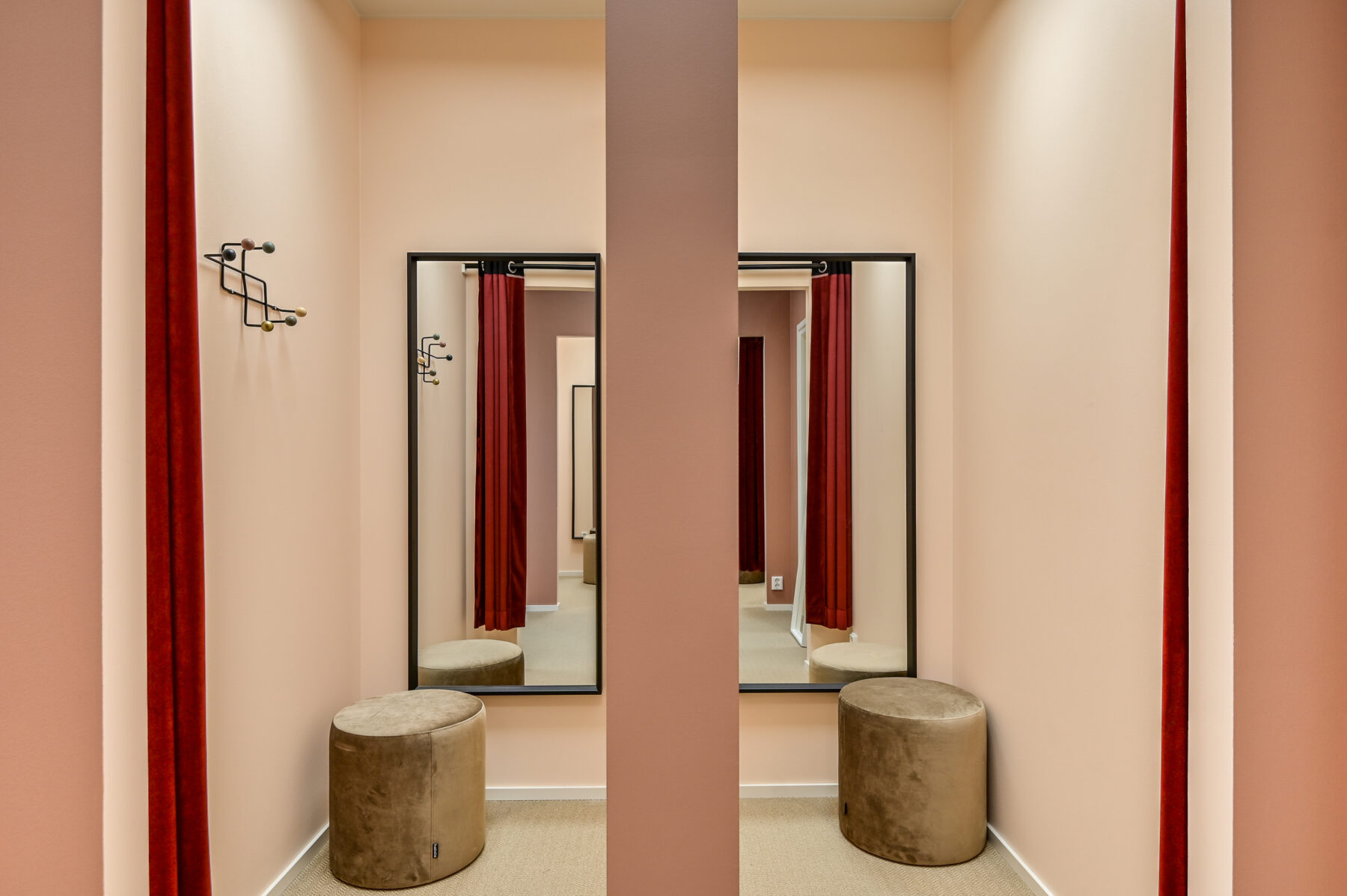 Ratkaisu: väri- ja materiaalikonsepti, opasteet ja brändielementit
